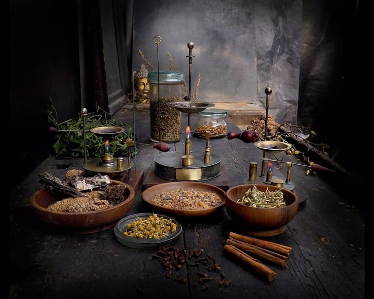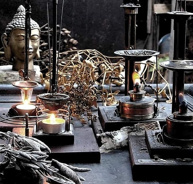 zahříváním bylin a pryskyřic se uvolňují nádherné vůně a léčivé látky